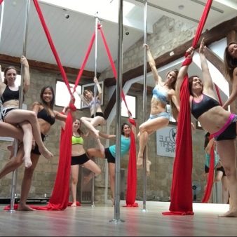 Démonstrations suivies de rafraîchissements et initiation pole et pole/tissu aérien pour vos invités.